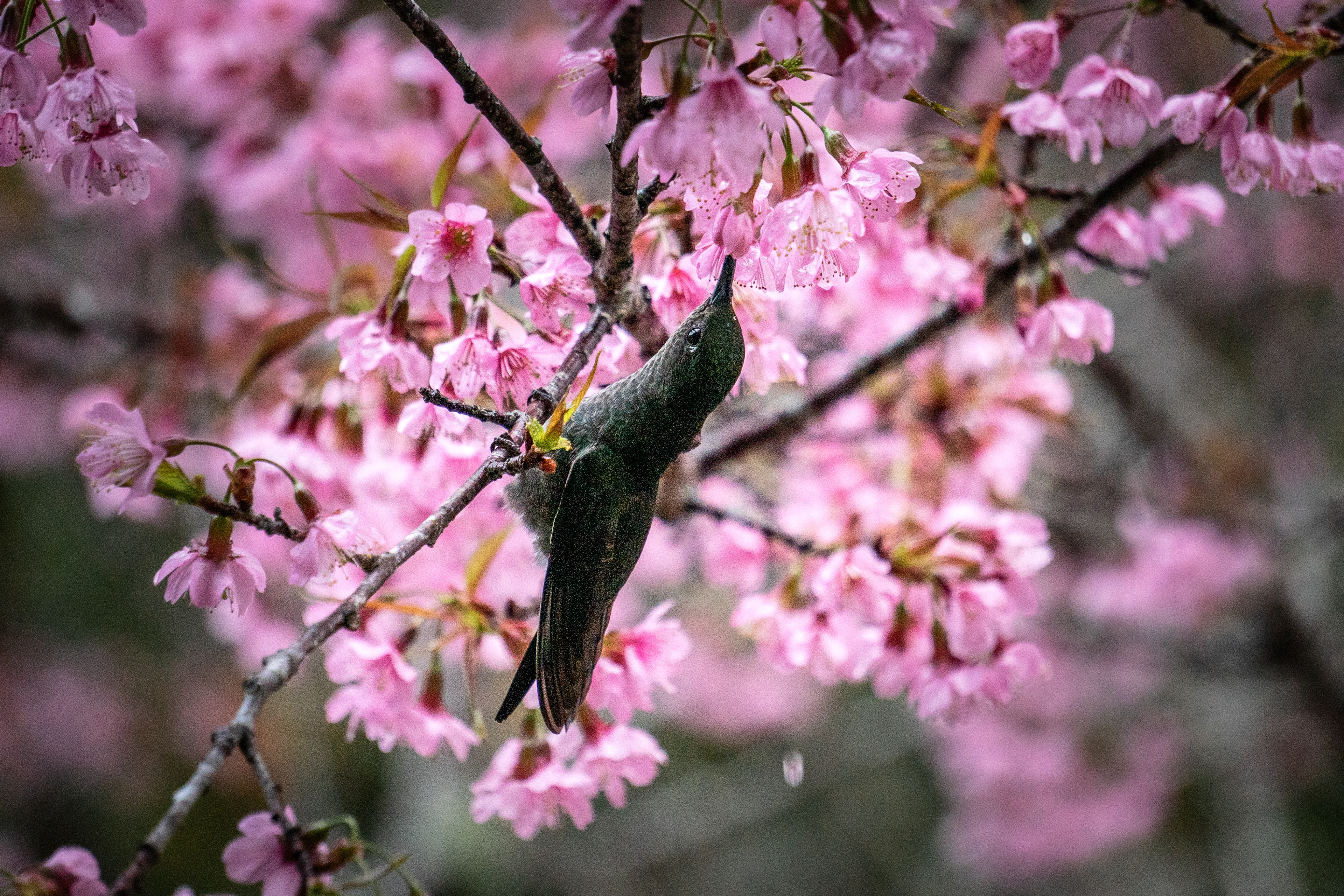 On the porch, near the cherry tree, many small birds came and went. I was with my daughter and picked up my camera: I wanted to photograph that movement, but even more than that, I wanted her to be part of it. So I suggested a game—I would only photograph the birds she pointed at.